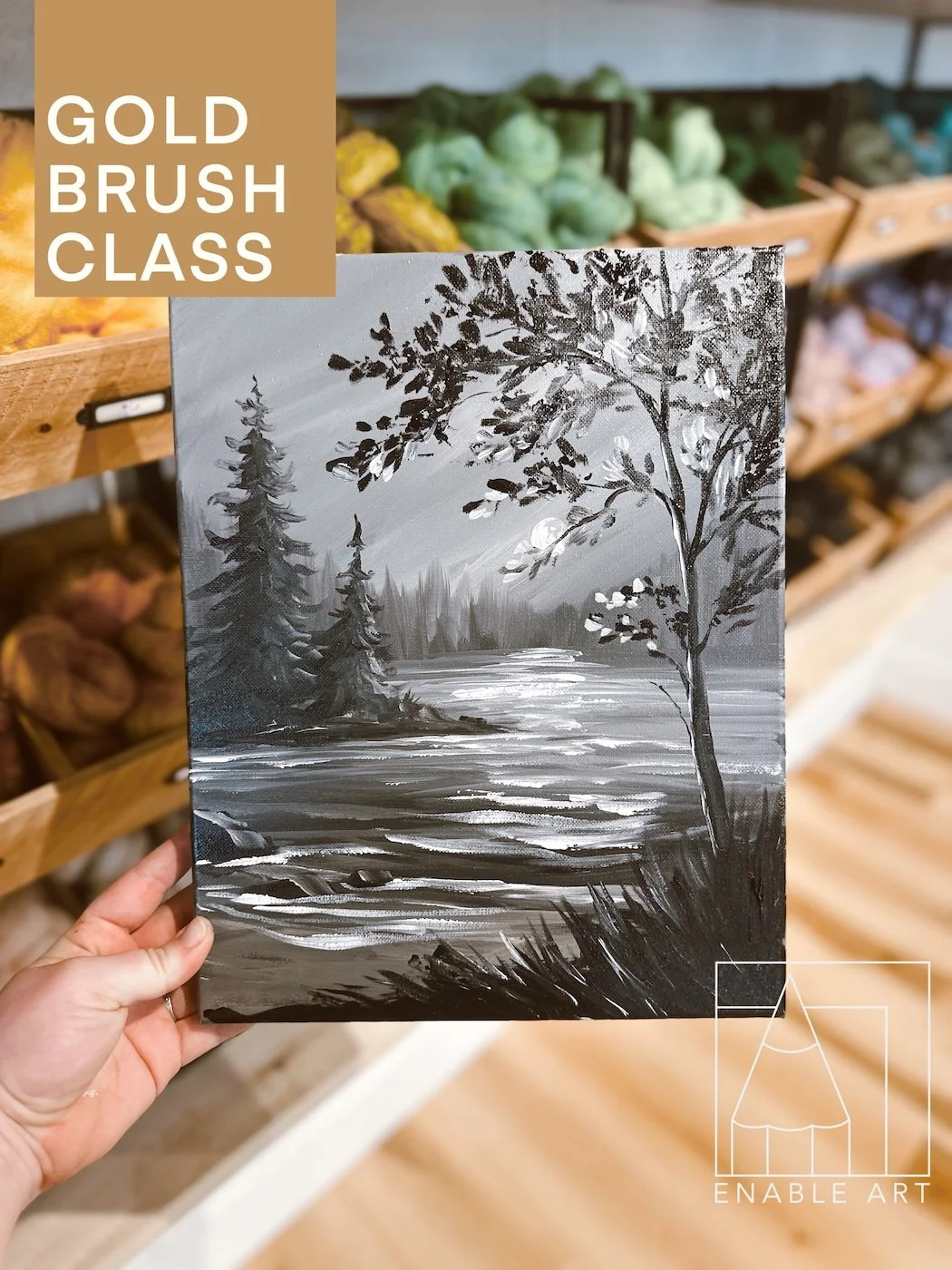 When you come to an Evening Art Class with Enable Art you are paying for a structured lesson that is lighthearted and fun! The instructor of these classes will cover the materials we are using in class, how to use them properly, and then jump into a beautiful project guiding you every step of the way!  You will leave with a new learned skill, a belly full of yummy snacks, a beautiful project you will be proud of, and more confidence in creating!