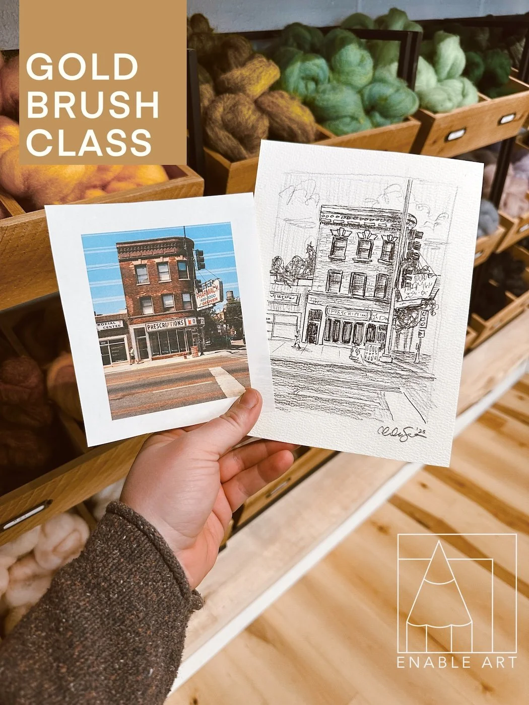 When you come to an Evening Art Class with Enable Art you are paying for a structured lesson that is lighthearted and fun! The instructor of these classes will cover the materials we are using in class, how to use them properly, and then jump into a beautiful project guiding you every step of the way!  You will leave with a new learned skill, a belly full of yummy snacks, a beautiful project you will be proud of, and more confidence in creating!