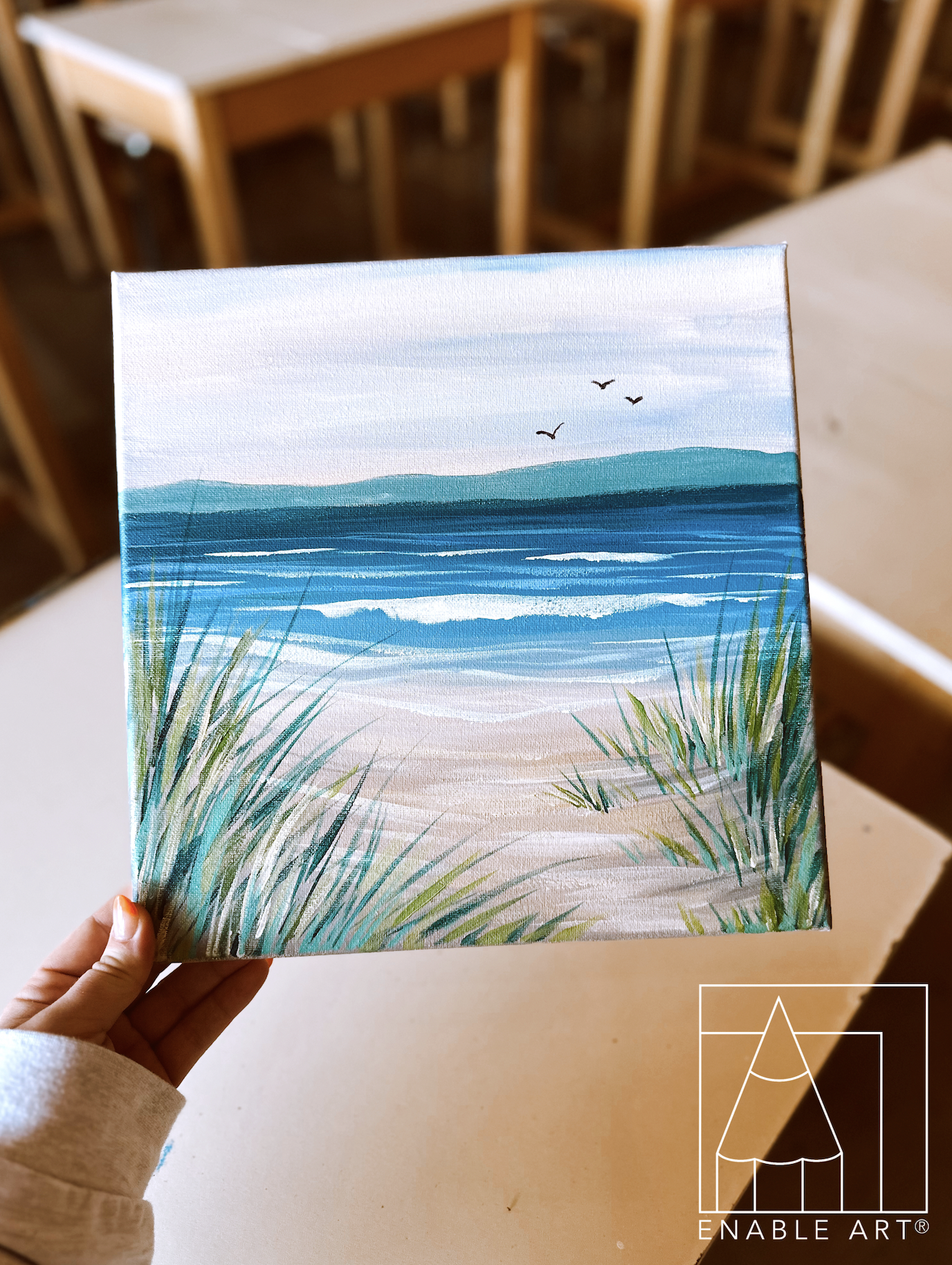 When you come to an Evening Art Class with Enable Art you are paying for a structured lesson that is lighthearted and fun! Chloe, the owner and instructor of these classes, will cover the materials we are using in class, how to use them properly, and then jump into a beautiful project guiding you every step of the way!  You will leave with a new learned skill, a belly full of yummy snacks, a beautiful project you will be proud of, and more confidence in creating!